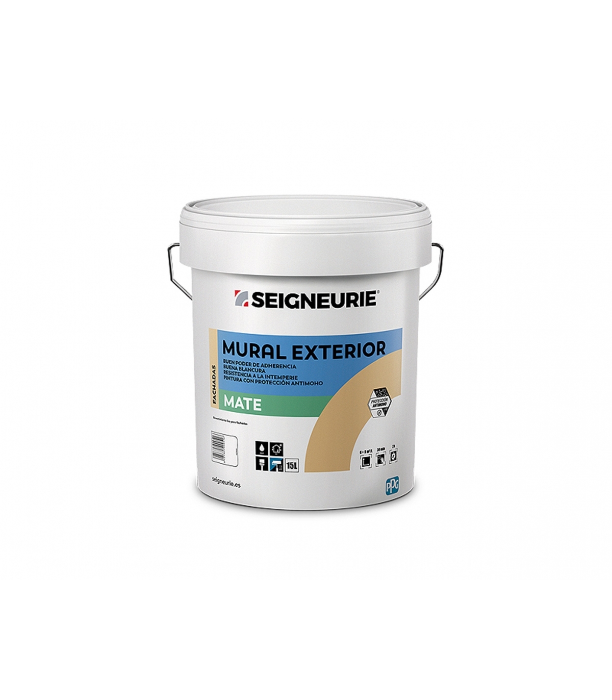 Pintura exterior mate, reacción al fuego B-s1, d0, con protección antimoho.